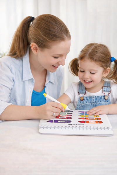 "“Finally something that keeps her busy without a screen!” My daughter just turned 3 and this book has been amazing for her attention span. She loves tracing the letters and matching the colors, and I love that we can wipe it clean and reuse it every day. We even bring it in the car and to restaurants. Worth every penny."